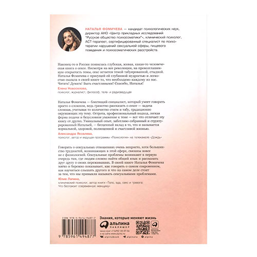 Книга Натальи Фомичевой Близость. Книга о хорошем сексе предлагает практическое руководство для улучшения сексуальной жизни. В ней раскрываются ключевые вопросы, такие как влияние различных факторов на сексуальность, принятие особенностей своего тела и тела партнера, а также как открыто говорить о желаниях и потребностях.